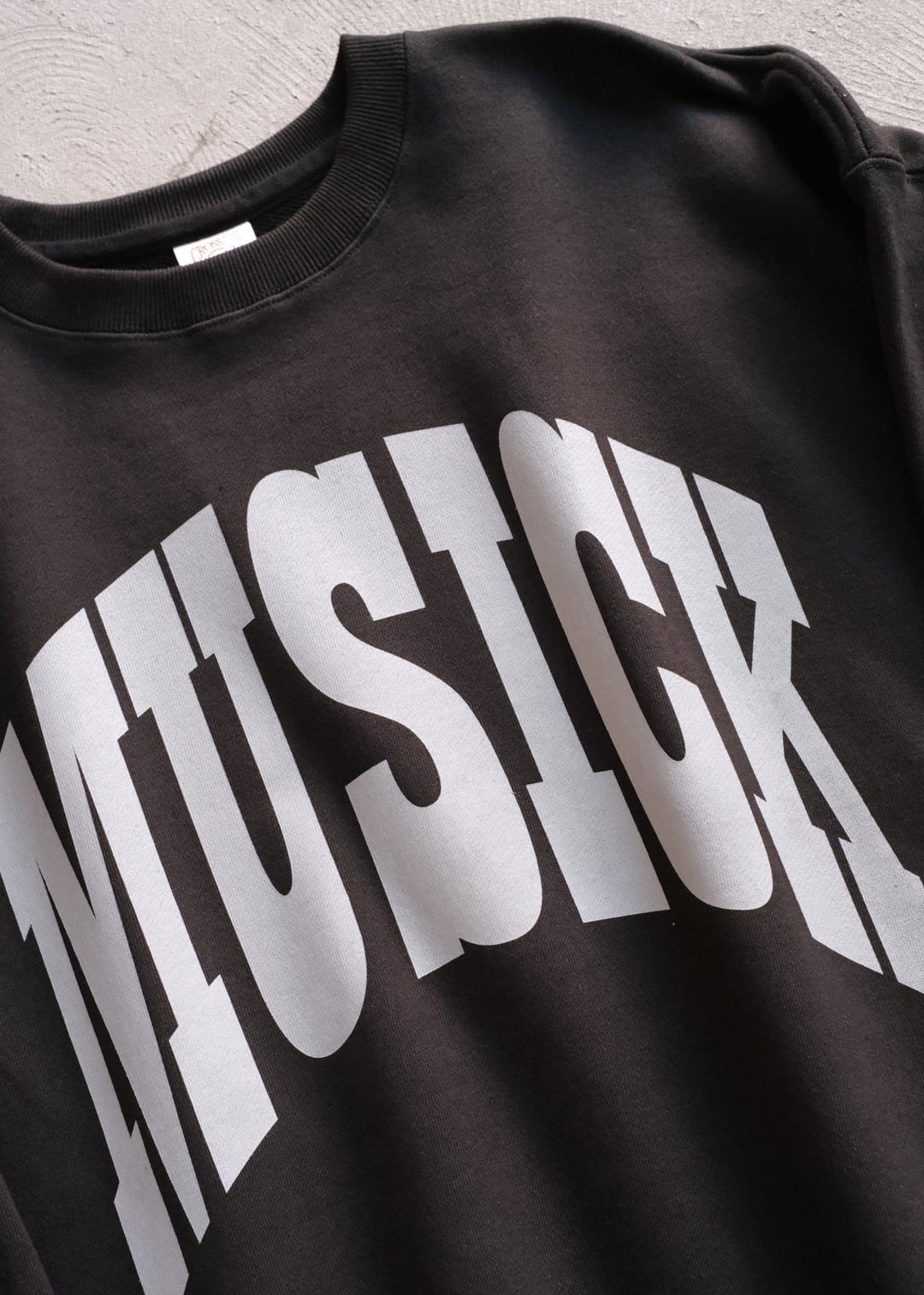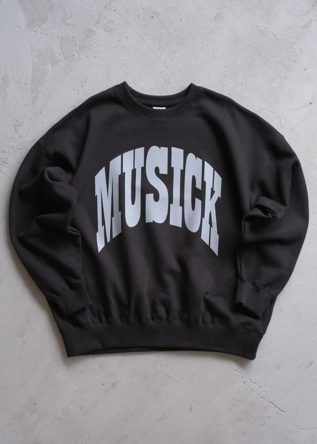 80年代まで実際に使われていたMUSICの旧綴り"MUSICK"を胸に大きくプリントしたビッグシルエットスウェット。