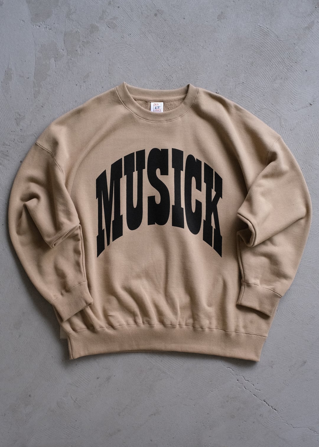 80年代まで実際に使われていたMUSICの旧綴り"MUSICK"を胸に大きくプリントしたビッグシルエットスウェット。