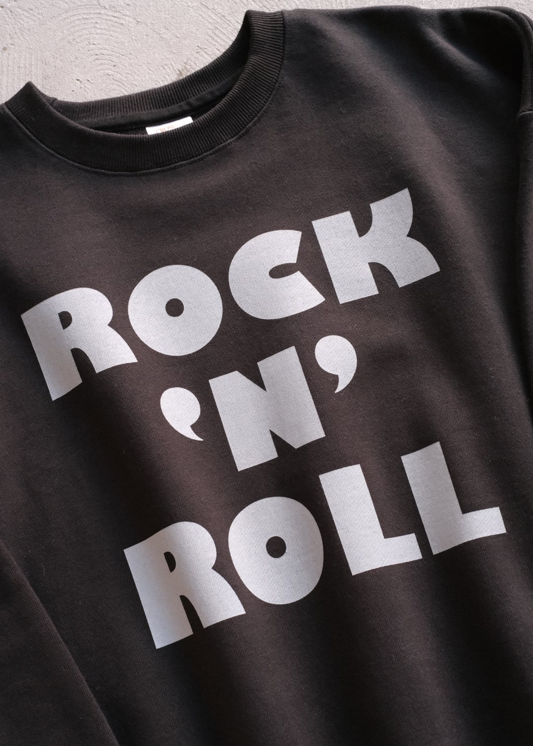 リアムがソロの時に舞台内に飾っていたROCK 'N' ROLLの言葉。イギリスの伝統的なフォント"GILL SANS"ベタ打ちの潔さ。オーセンティックな佇まいの中に親しみが感じられるこのフォントでスウェットを作りました。