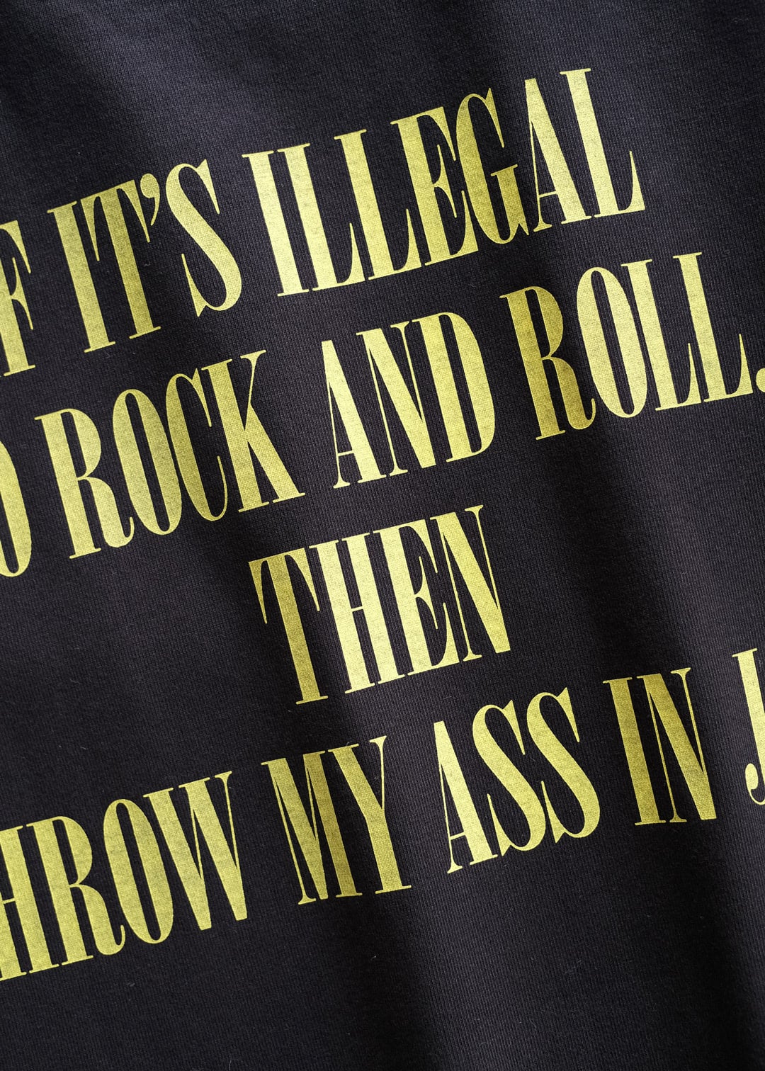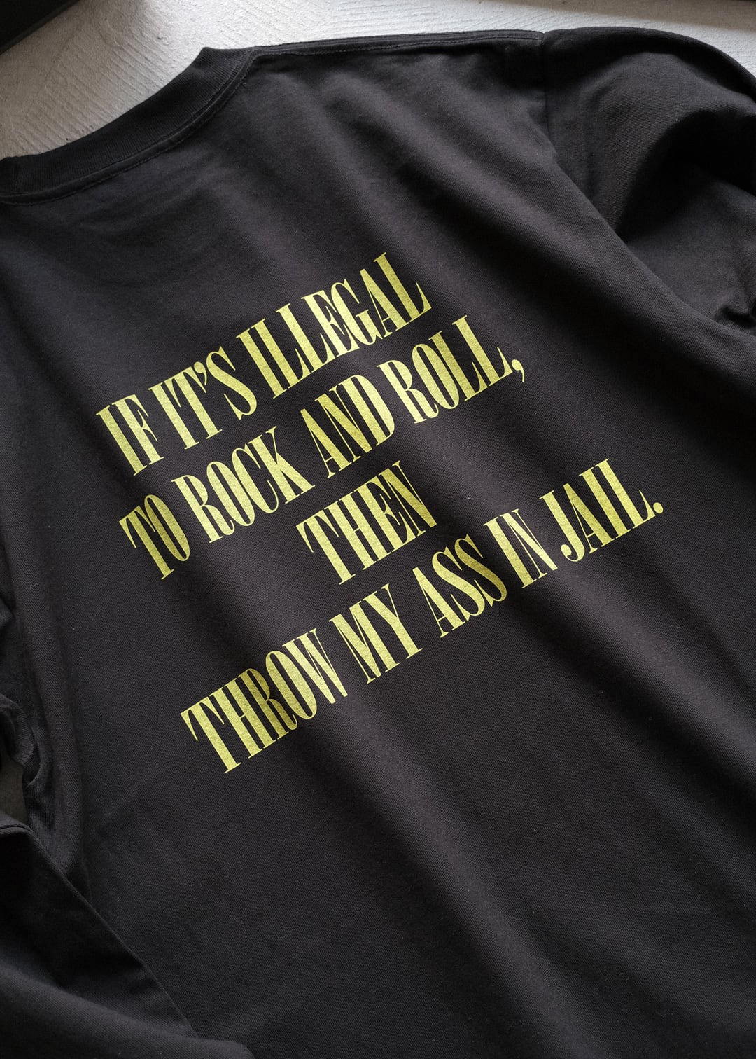 このTシャツは、シルクスクリーンという手法でプリントしています。かつてアンディーウォーホルが作品制作に使用していたアナログなプリント手法です。長く着用することでインク部分にクラックが現れたり所々剥がれたりと、シルクスクリーンならではのエイジングをお楽しみいただけます。