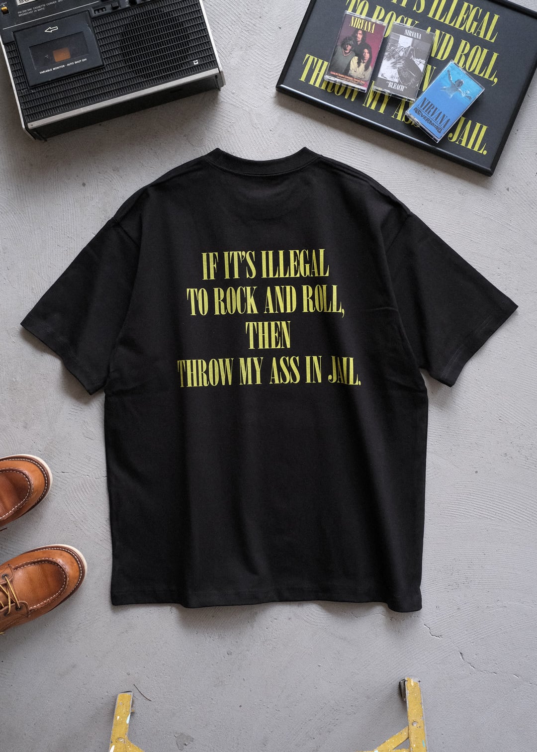 NIRVANAといえばやはり黒地に黄色が鉄板。黒地の影響を受けて黄色があまり鮮やかに出ませんが、それが功を奏して逆にグランジ感を漂わせています。