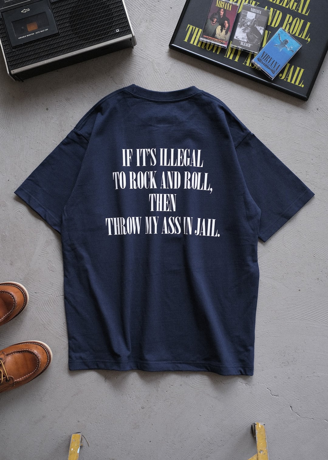 ボディーは、NIRVANAの名盤「NEVERMIND」をイメージしたネイビーカラーで、肉厚8.1ozのUSAコットンを贅沢に100%使用。思いっきり着古してグランジ感を出してみてはいかがでしょうか。
